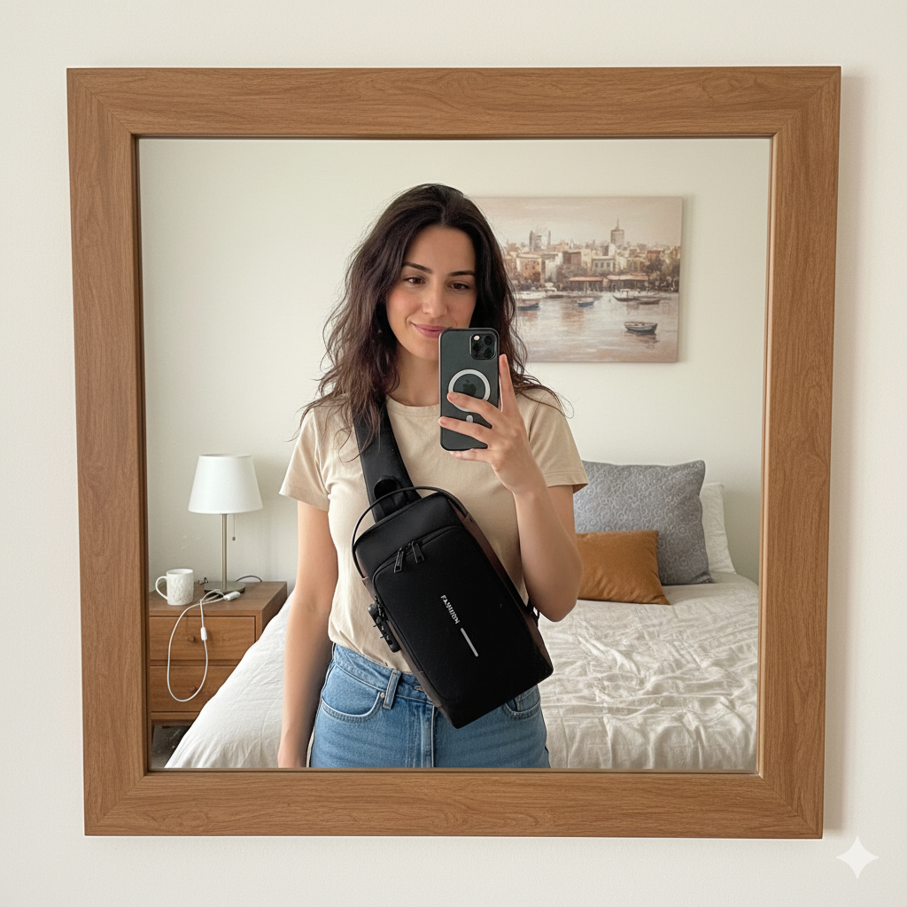 בתוך התיק יש חיבור USB שמאפשר לחבר מטען נייד מבפנים, ובעזרת כבל טעינה מבחוץ ניתן להטעין את הטלפון תוך כדי הליכה, בלי לפתוח את התיק.